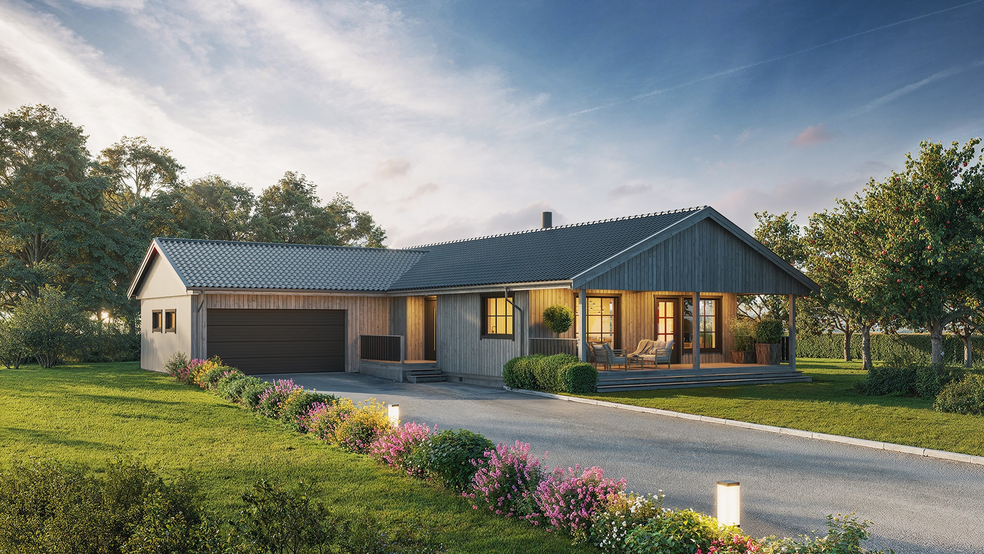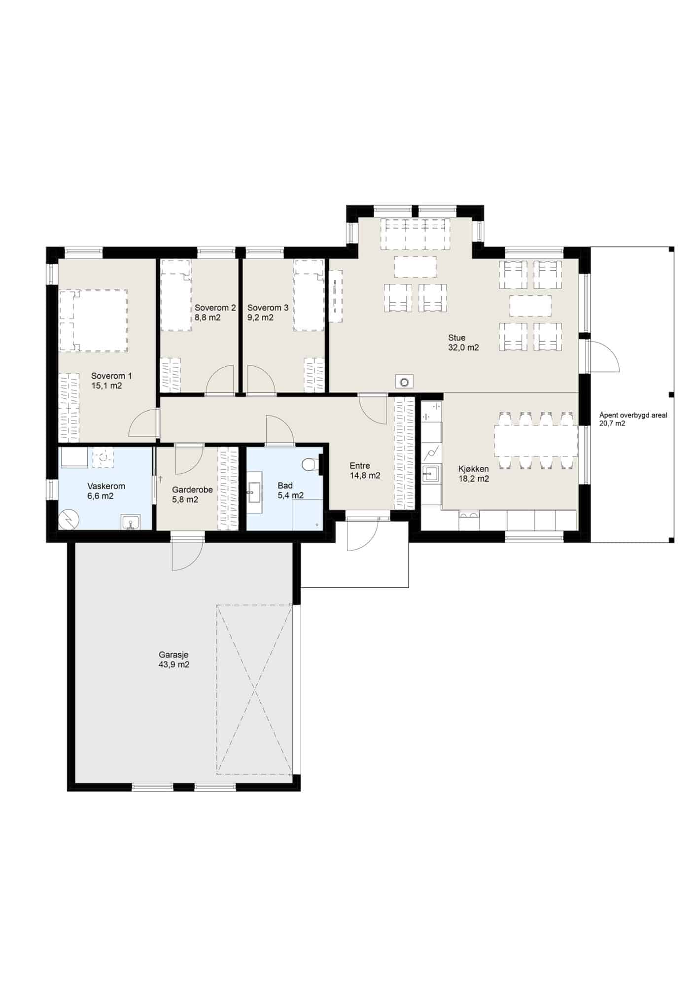 Neatun er et smart vinkelhus på ett plan og dermed tilpasset alle livets faser. Garasjen er integrert i bygningskroppen. Vinkelhuset er utviklet for flate tomter og passer inn i de fleste bomiljøer. Bygningskroppen kan forlenges med takoverbygg over terrassen. En romslig entre tar imot deg og leder videre til oppholdsrommet. Stuen og spisestuen har store vinduer og her er det gode muligheter til å nyte utsikten mens man inntar en bedre middag eller slapper av i godstolen. Neatun rommer i tillegg tre soverom, bad, garderobe og bod, samt vaskerom med egen inngang. Med alt på et plan er dette hjemmet et utmerket alternativ til våre andre tradisjonelle hus.