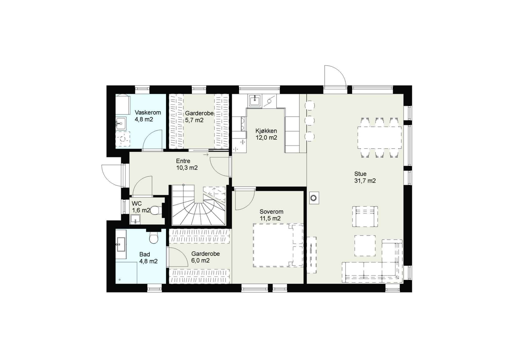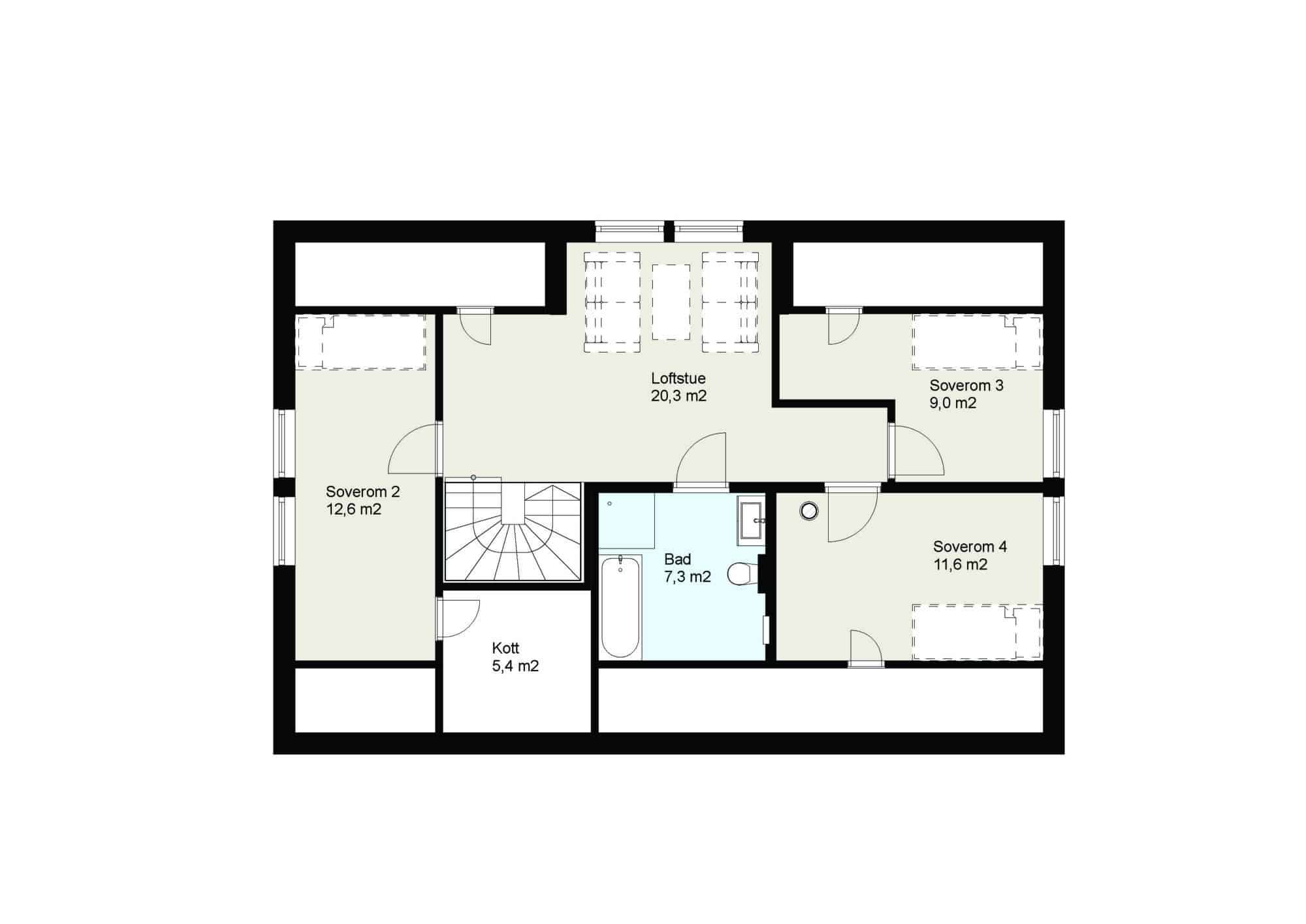 Nesjøen har et klassisk og harmonisk uttrykk og en planløsning som er lett å like. Det inntrekte inngangspartiet er plassert på gavlen og herfra kommer man inn i en romslig entre med tilliggende vaskerom, wc, bod og garderobe. Entreen leder videre til et åpent og lyst oppholdsrom med kjøkken, stue og spisestue med utgang til terrassen. På hovedplanet er det i tillegg et foreldresoverom med eget bad og garderobe. Loftet rommer to soverom, bad og stue.